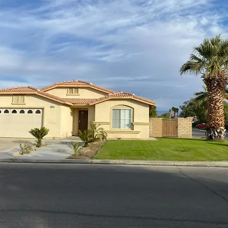 Die Villa in Indio verfügt über ein Badezimmer mit einem Whirlpool, einer getrennten Toilette und einer Dusche. Ein Haartrockner, ein Wäschetrockner und Handtücher werden auch angeboten.